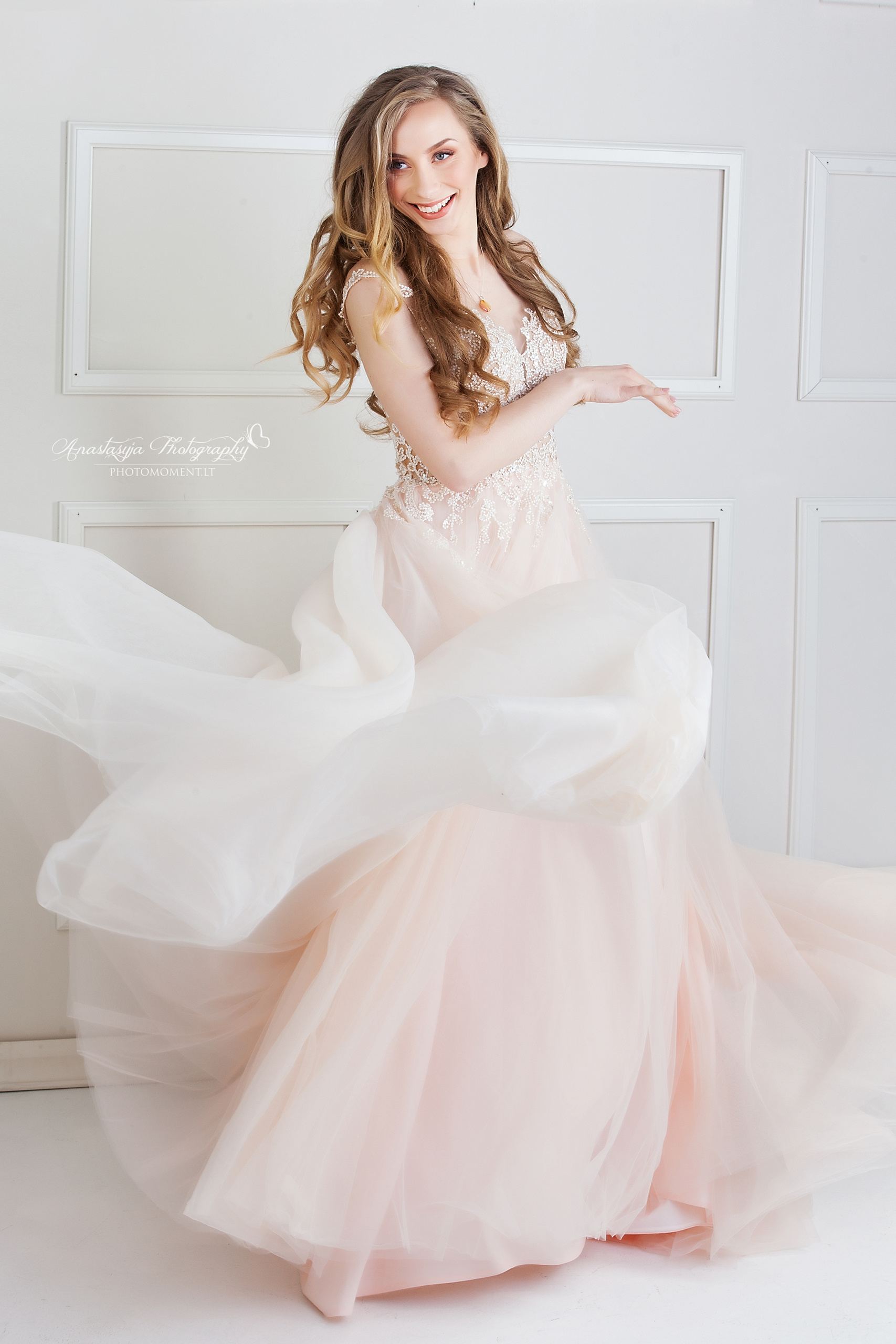 Su šaunia komanda įamžinom tris visiškai skirtingus nuotakų įvaizdžius, kur kiekvienas iš jų nupasakoja savo istoriją... ❤️PIRMAS ĮVAIZDIS. Švelnus, romantiškas, lengvas. Švelnių bruožų, šviesiaplaukė Agnė - lyg princesė iš Pasakų šalies: vėjavaikės garbanos, lengvas makiažas, nuostabaus atspalvio ir grožio suknelė nepalieka abejingais. Studijos mums buvo maža: norėjosi bėgti, šokti, suktis... Bet kartais reikia sustoti ir pasinerti į romantiškas svajones...
